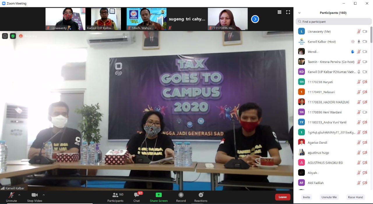 Berbeda seperti tahun sebelumnya, kegiatan Tax Goes To Campus (TGTC) tetap berjalan dengan lancar meskipun dilaksanakan secara online melalui video conference Zoom Meeting Apps.