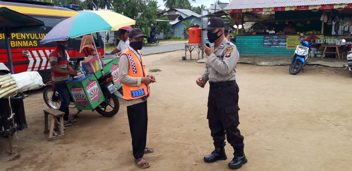 TRIBUNPONTIANAK.CO.ID, KETAPANG - Kepolisian Resor Ketapang melalui personel Sat Binmas melaksanakan sambang dan binluh terhadap masyarakat di Pasar Rakyat, Desa Sukamaju, Kecamatan Muara Pawan, Minggu (27/09/2020).