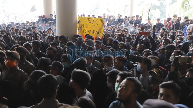 Sejumlah massa gabungan menggelar aksi menolak Undang-undang Omnibus Law di Kantor DPRD Kalbar, Jalan Ahmad Yani, Pontianak, Kalimantan Barat, Kamis 8 Oktober 2020. Aksi yang awalnya berlangsung damai berakhir ricuh setelah beberapa massa melakukan perbuatan anarkis. (TRIBUN PONTIANAK/ DESTRIADI YUNAS JUMASANI)Sejumlah massa gabungan menggelar aksi menolak Undang-undang Omnibus Law di Kantor DPRD Kalbar, Jalan Ahmad Yani, Pontianak, Kalimantan Barat, Kamis 8 Oktober 2020. Aksi yang awalnya berlangsung damai berakhir ricuh setelah beberapa massa melakukan perbuatan anarkis. (TRIBUN PONTIANAK/ DESTRIADI YUNAS JUMASANI)Sejumlah massa gabungan menggelar aksi menolak Undang-undang Omnibus Law di Kantor DPRD Kalbar, Jalan Ahmad Yani, Pontianak, Kalimantan Barat, Kamis 8 Oktober 2020. Aksi yang awalnya berlangsung damai berakhir ricuh setelah beberapa massa melakukan perbuatan anarkis. (TRIBUN PONTIANAK/ DESTRIADI YUNAS JUMASANI)Sejumlah massa gabungan menggelar aksi menolak Undang-undang Omnibus Law di Kantor DPRD Kalbar, Jalan Ahmad Yani, Pontianak, Kalimantan Barat, Kamis 8 Oktober 2020. Aksi yang awalnya berlangsung damai berakhir ricuh setelah beberapa massa melakukan perbuatan anarkis. (TRIBUN PONTIANAK/ DESTRIADI YUNAS JUMASANI)