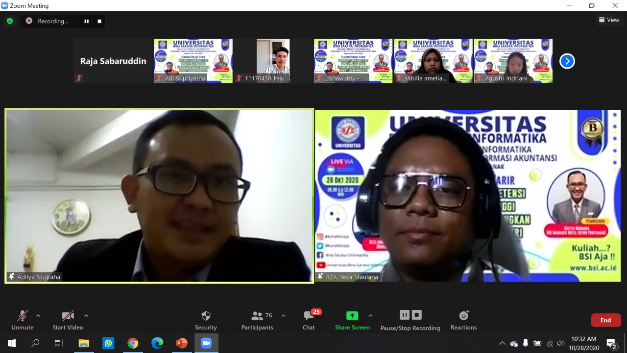 Program Studi Sistem Informasi Akuntansi (Prodi SIA) Universitas Bina Sarana Informatika (UBSI) Pontianak sukses menggelar Seminar Online Karir dengan