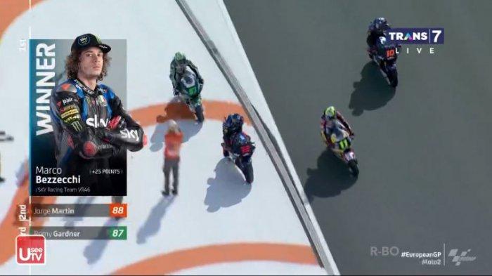 Hingga akhir balapan, posisi Marco Bezzecchi dan Jorge Martin tidak berubah.