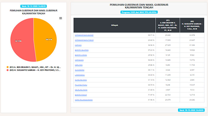 TERKINI Hasil Hitung Cepat Pilkada Kalteng 2020 di Website KPU, Unggul Sugianto-Eddy atau Ben-Ujang?