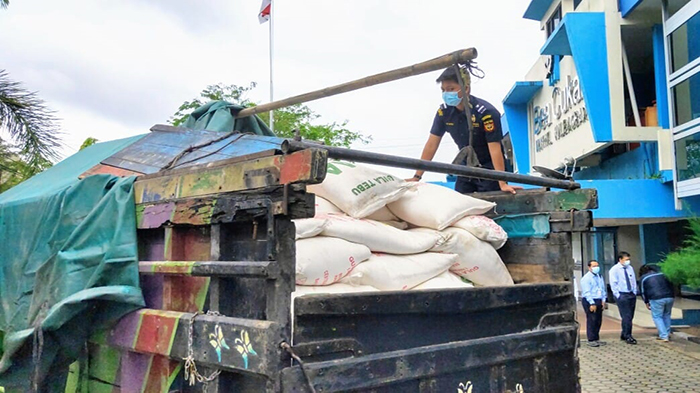 TRIBUNPONTIANAK.CO.ID, PONTIANAK - Bea Cukai Kalbagbar hibahkan 160 karung gula ke Pemerintah Kabupaten Sambas pada Rabu 13 Januari 2021 sekitar pukul 11.00 WIB