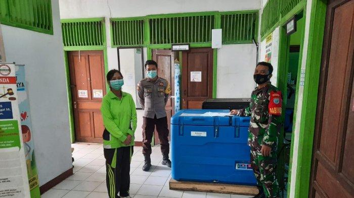 TRIBUNPONTIANAK.CO.ID, BENGKAYANG - Personel Polsek Capkala, Polres Bengkayang bersama Koramil 1202-06 Sungai Duri melaksanakan Pengamanan penyimpanan Vaksin Sinovac di Pusekesmas Capkala, Kecamatan Capkala, Bengkayang, Jumat 29 Januari 2021.