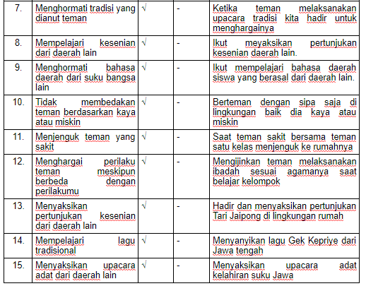 Lalu, bagaimanakah caramu menyikapi perbedaan dan keragaman yang ada di sekitar tempat tinggalmu? Kamu tentu pernah mengamalkan sikap dan perilaku yang mencerminkan keragaman di bawah ini. Namun, jika belum pernah mengamalkan, kamu bisa segera mengamalkan