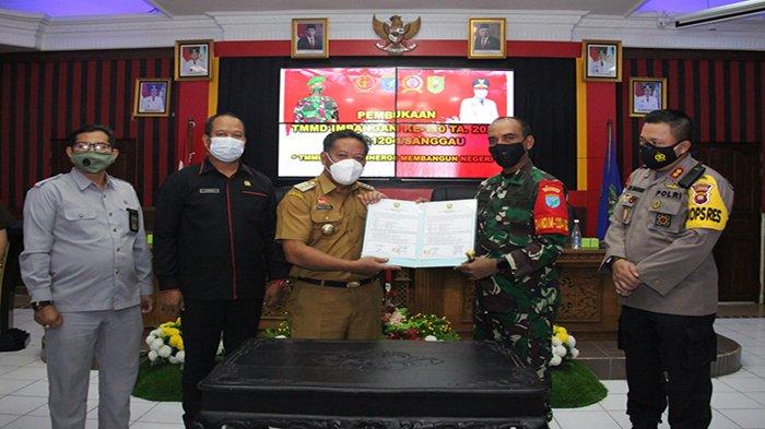 TRIBUNPONTIANAK.CO.ID, SANGGAU - Bupati Sanggau Paolus Hadi membuka kegiatan TNI Manunggal Membangun Desa (TMMD) Imbangan ke-110 Tahun Anggaran 2021 Kodim 1204/Sanggau. Kegiatan berlangsung di Ruang Musyawarah Lantai I Kantor Bupati Sanggau, Selasa 2 Februari 2021. Tema yang diusung yakni “TMMD wujud sinergi membangun negeri”.