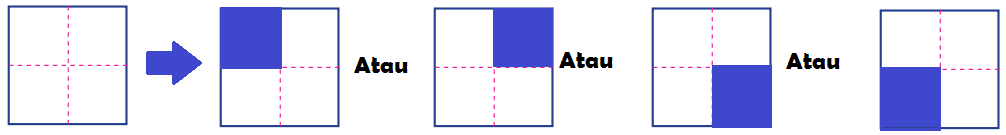 1. Siti memotong sebuah kertas berbentuk persegipanjang menjadi 4 bagian. Masingmasing potongan sama besar. Setiap potongan adalah .... bagian.