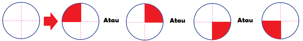 Menyatakan bagian benda dari kumpulan benda yang menyatakan pecahan seperempat.