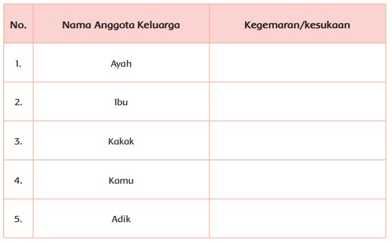 2. Tanyakanlah mengenai kegemaran setiap anggota keluargamu.