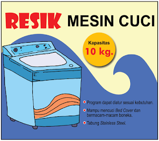 Gambar di atas merupakan iklan media cetak yang menawarkan produk mesin cuci dengan merk “Resik”. Iklan tersebut berisi penjelasan tentang produk dan kelebihan mesin cuci tersebut. Penjelasan tersebut meliputi kapasitas, program, dan bahan tabung dalam mesin cuci. Iklan tersebut mengajak konsumen untuk membeli mesin cuci bermerk “Resik”.
