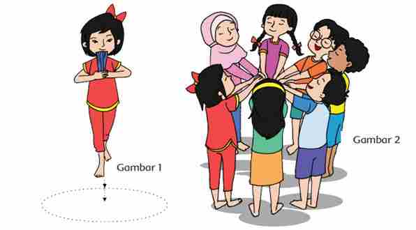 Siti dan ibu selesai bersamaan. Siti dan ibu membawa air dan hidangannya ke ruang tamu. Sementara itu, ayah dan adik Siti sedang menonton pertunjukan tari di televisi. Siti tertarik pada tarian yang ditampilkan penari di televisi. Setiap tarian menampilkan berbagai variasi pola lantai. Ingatkah kalian yang dimaksud pola lantai? “Wah, bagus ya, Yah! Formasi penarinya berubah-ubah, teriak Siti”. Pada waktu masih kecil, Ayah Siti pandai menari. Ayah Siti juga sering ikut latihan menari di keraton. Oleh karena itu, Ayah Siti paham betul apa yang diserukan oleh Siti. Ayah pun menanggapi seruan Siti, “Itu yang dinamakan variasi pola lantai, Nak”. Kemudian, ayah menerangkan mengenai pola lantai kepada Siti.