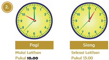 Kegiatan dimulai pagi = 08.00 dan berakhir pagi = 10.00. Lama waktu kegiatan selama 2 jam atau 120 menit. Beberapa satuan dari waktu adalah detik, menit dan jam
