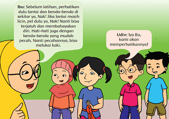 Isi percakapan udin dan ibu adalah ibu memberitahukan bahwa Sebelum latihan, perhatikan dulu lantai dan benda-benda di sekitar.