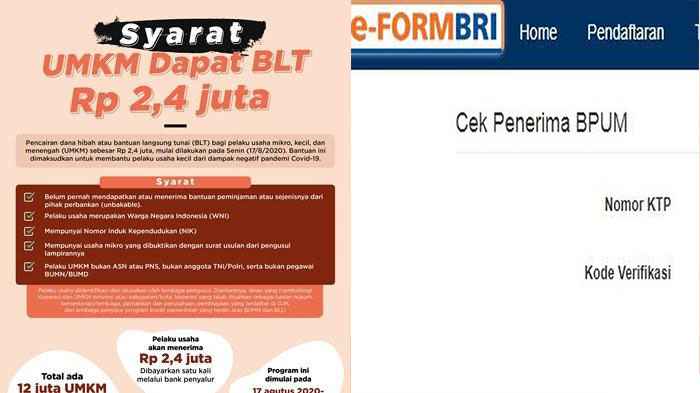 Bantuan juga bisa dicek melalui link Eform BRI lewat HP secara online di https://eform.bri.co.id/bpum