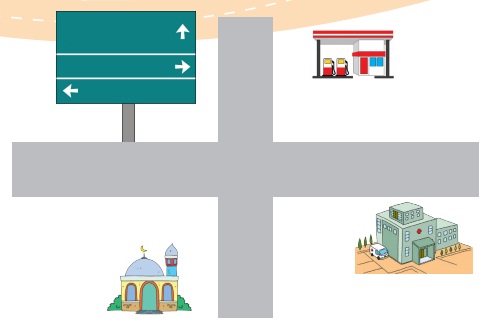Mereka sedang menuju rumah ibadah masing-masing. Manakah arah yang harus mereka lalui?