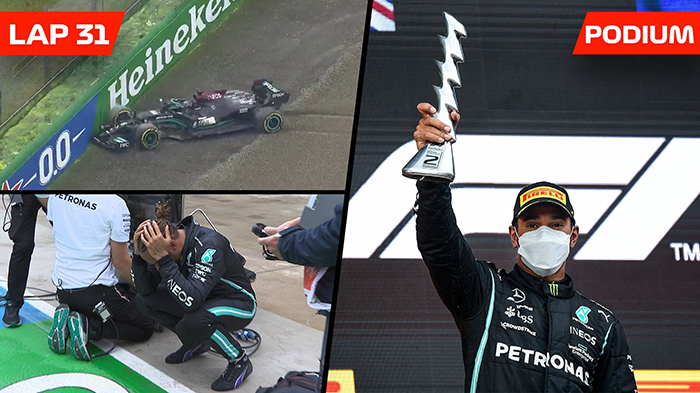 Adapun, dua pembalap Ferrari, Charles Leclerc dan Carlos Sainz, hanya bisa finis di P4 dan P5 setelah gagal menahan kecepatan Hamilton.