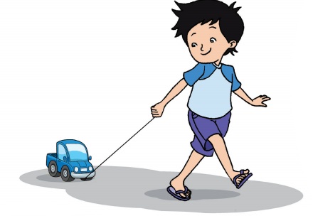 3. Tarik mobil mainan perlahan, lalu semakin lama semakin cepat.