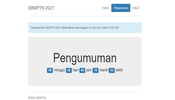 Pengumuman hasil UTBK-SBMPTN diselenggarakan sesuai jadwal yakni pada tanggal 14 Juni 2021.