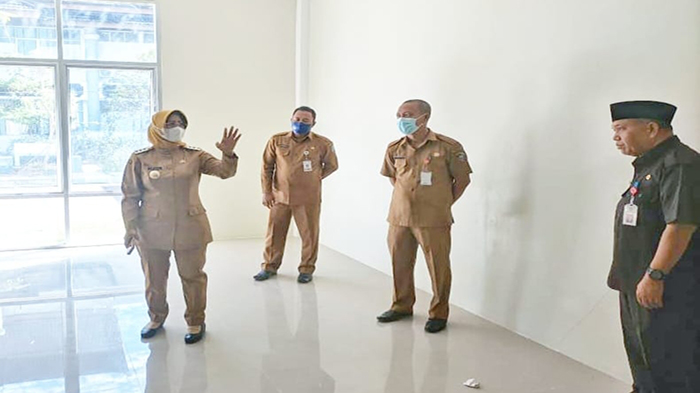 Bupati Mempawah Erlina meninjau Gedung Command Center yang berada di lingkungan Kantor Bupati Mempawah, Selasa 29 Juni 2021.