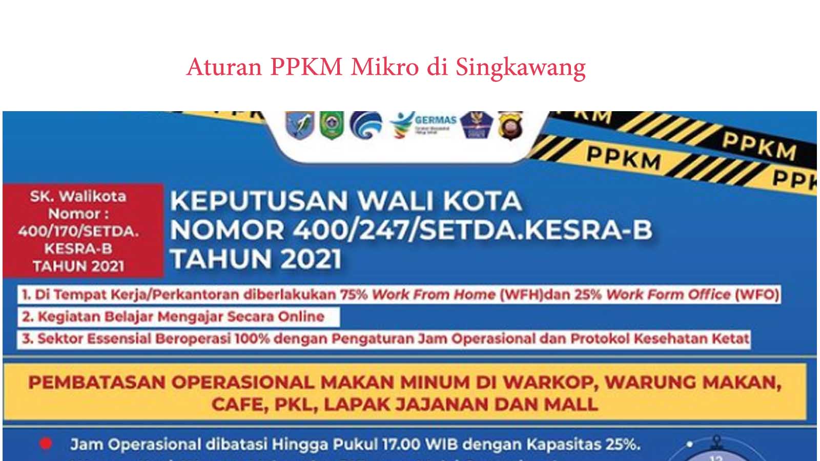Penerapan PPKM Mikro di Singkawang dimulai setelah Wali Kota, Tjhai Chui Mie menerbitkan Surat Keputusan Nomor 400/247/SETDA.KESRA-B TAHUN 2021.