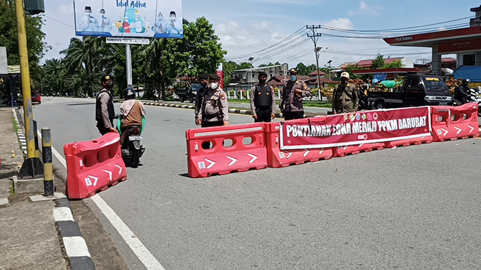 Sejauh pantauan Tribun Pontianak hingga Rabu 21 Juli 2021, bahwa beberapa ruas jalan masih dilakukan penyekatan dan tampak petugas yang berjaga-jaga di lokasi penyekatan, serta tersedia posko PPKM.