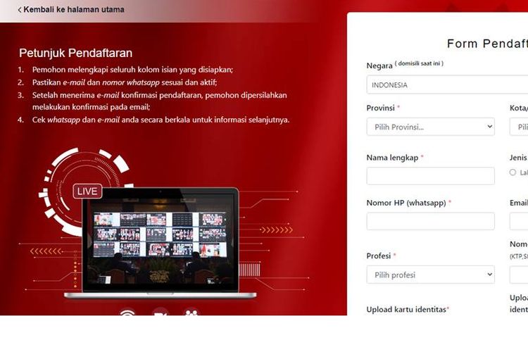Cara mendaftar sebagai peserta upacara pada peringatan HUT ke-76 RI, yakni: