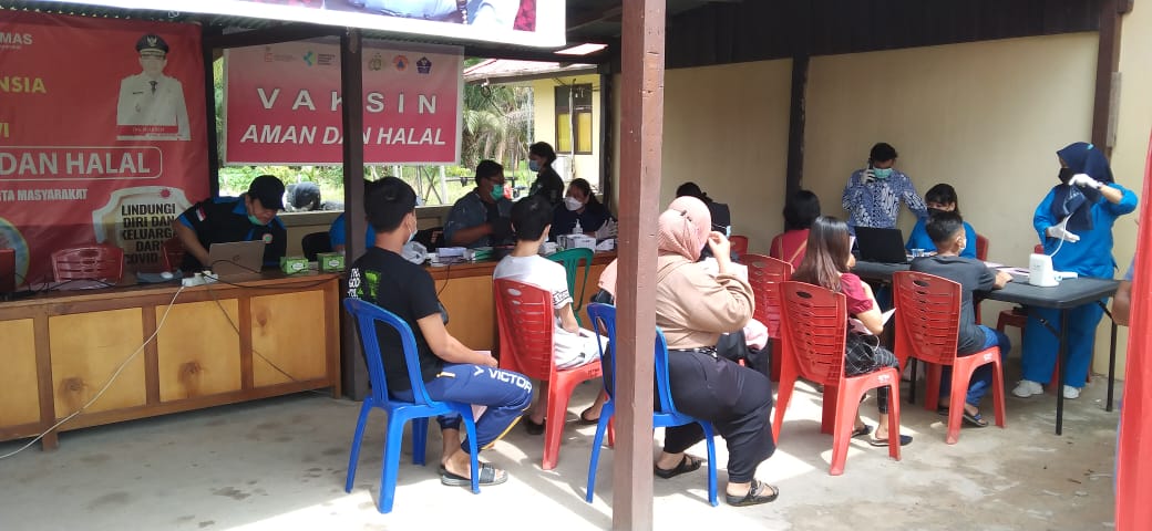 Ratusan warga tampak memadati halaman Polsek Nanga Pinoh untuk mengikuti vaksinasi Sinovac gratis.