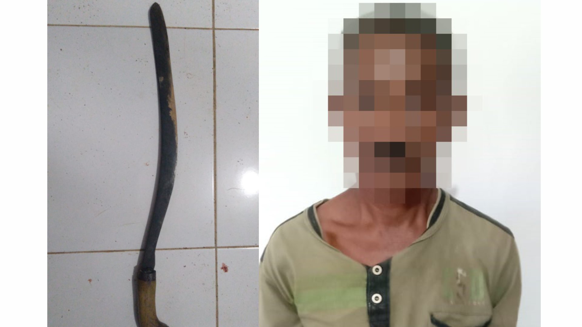 Tersangka diamankan beserta barang bukti berupa sebilah parang berukuran 60 cm yang diduga kuat digunakan pelaku untuk membacok korban.