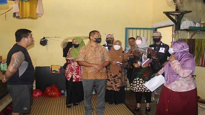 Tim dari Dinkes yang juga didampingi oleh Plh kalapas dan petugas lainnya mendatangi satu persatu kamar hunian warga binaan.