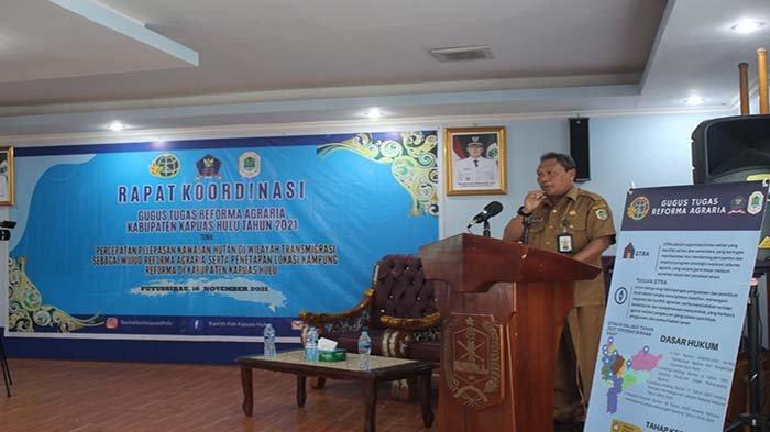 TRIBUNPONTIANAK.CO.ID, KAPUAS HULU - Sekretaris Daerah Kabupaten Kapuas Hulu, H Mohd Zaini menghadiri langsung rapat koordinasi gugus tugas reforma agraria (GTRA) tahun 2021, di Aula Bappeda Kapuas Hulu, Selasa 16 Nopember 2021.