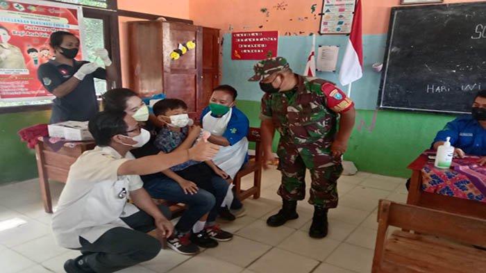 TRIBUNPONTIANAK.CO.ID, LANDAK - Danramil 06/Menjalin Pelda Paidi mendukung penuh pelaksanaan vaksinasi dalam rangka membantu terget yang dicanangkan dari pemerintah agar masyarakat tervaksin.