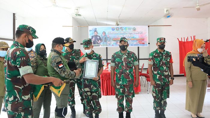 Penghargaan tersebut diserahkan Danrem 121/Abw di tiga lokasi vaksinasi serentak, yaitu di Desa Jongkat, Desa Peniraman dan Aula Makodim 1201/Mph, Kabupaten Mempawah, Selasa 22 Februari 2022.