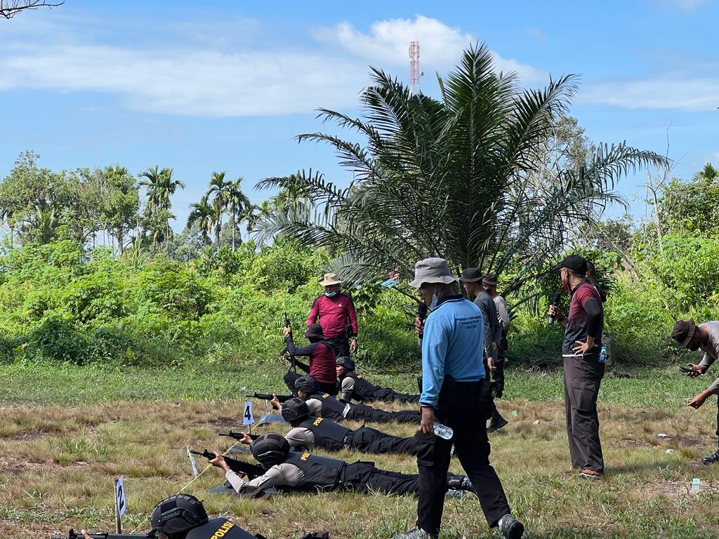 Kompol Paino, SPd menyampaikan salah satu materi yang dilatihkan adalah menembak dengan menggunakan senjata api jenis Laras Panjang SBI V2 yang menjadi senjata organik dari setiap personel Ditsamapta Polda Kalba.