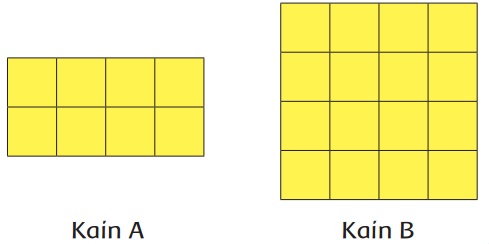Maka, luas kain A adalah 8 satuan persegi dan luas kain B adalah 16 satuan persegi.