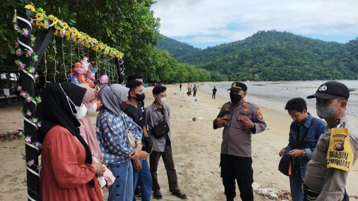 TRIBUNPONTIANAK.CO.ID, SUKADANA - Kapolsek Sukadana Iptu Mulyadi memberikan imbauan kepada para pengunjung tempat wisata Pantai Pulau Datok, yaitu untuk memastikan penerapan protokol kesehatan di kawasan wisata untuk mencegah penyebaran covid-19.