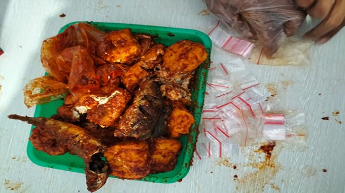Benar saja, ketiga tahu tersebut berisikan benda selundupan. Satu tahu berisi sabu di dalam sebuah plastik klip, sementara dua tahu lainnya berisikan bungkusan plastik klip.