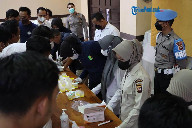TRIBUNPONTIANAK.CO.ID, PONTIANAK- Sebanyak 49 personel Polresta Pontianak menjalani test urine di Aula Mapolresta Pontianak, Senin 6 Juni 2022 pukul 15.30 WIB.