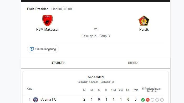 Keduanya yaitu PSM dan Persik sama-sama memiliki tiga poin dengan selisih sama-sama satu gol.