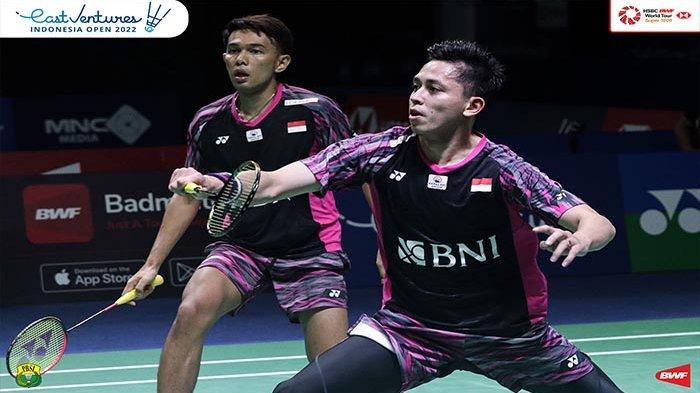 Ganda putra Indonesia Fajar / Rian saat beraksi di ajang Indonesia Open 2022 belum lama ini. Fajar / Rian akan berhadapan dengan wakil Malaysia di Malaysia Open 2022.