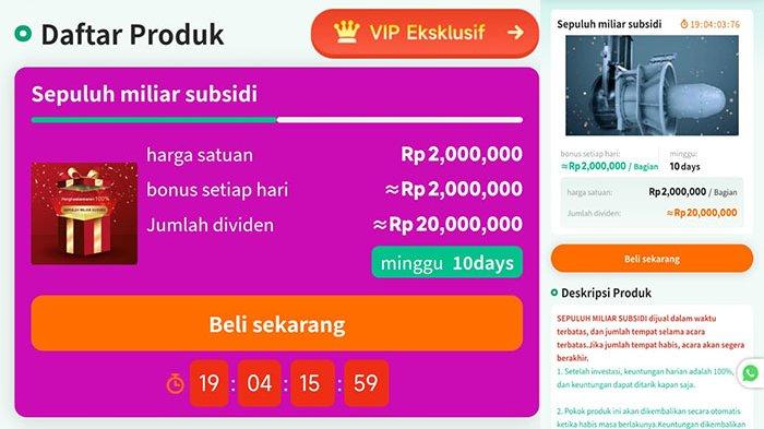 Seperti paket sepuluh miliar subsidi senilai Rp 2 juta dengan nilai total keuntungan Rp 20 juta selama 10 hari saja.