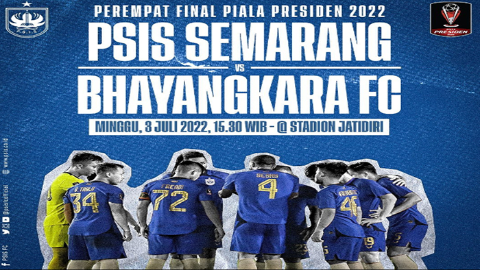 Laga Peremapat Final Piala Presiden 2022 besok dibuka diawal pertemuan antara PSIS Semarang Vs Bhayangkara FC Kick Off mulai pukul 15.30 WIB.