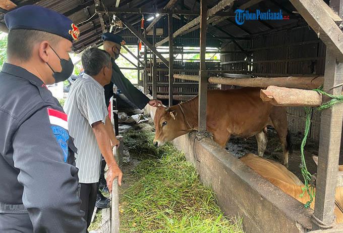 TRIBUNPONTIANAK.CO.ID, KETAPANG - Dalam upaya pencegahan penyebaran Penyakit Mulut dan Kuku (PMK) pada hewan ternak khususnya sapi, Bhabinkamtibmas jajaran Polsek Tayap Polres Ketapang Polda Kalbar melakukan pengecekan ke kandang Ternak Sapi dan Kambing di Desa Tajok Kayong Kecamatan Nanga Tayap Kabupaten Ketapang, Minggu 17 Juli 2022, pukul 15.00 wib.