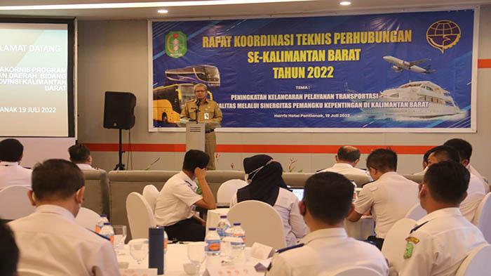 TRIBUNPONTIANAK.CO.ID, PONTIANAK - Sekretaris Daerah Provinsi Kalimantan Barat, Harisson membuka Rapat Koordinasi Teknis Perhubungan se-Kalimantan Barat Tahun 2022 dengan tema 'Peningkatan Kelancaran Pelayanan Transportasi yang Berkualitas Melalui Sinergitas Pemangku Kepentingan di Kalimantan Barat' bertempat di Hotel Harris Jalan Gajah Mada Pontianak, Selasa 19 Juli 2022.