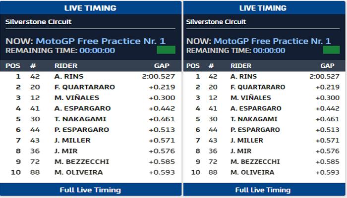 Posisi ketiga ada nama Maveric Vinales diikuti Aleix Espargaro.