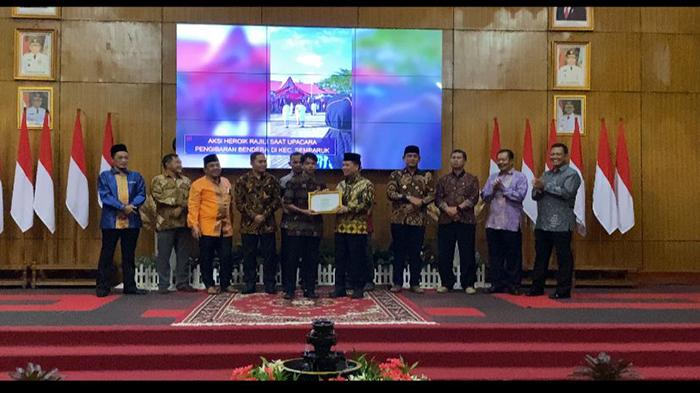TRIBUNPONTIANAK.CO.ID, SAMBAS - Atas aksi heroiknya, Rajili siswa SMKN 1 Semparuk mendapat penghargaan dari Bupati Sambas. Rajili menceritakan detik-detik ketika dia memanjat tiang bendera saat upacara HUT ke 77 Kemerdekaan Republik Indonesia di halaman Kantor Camat Semparuk, Rabu 17 Agustus 2022.