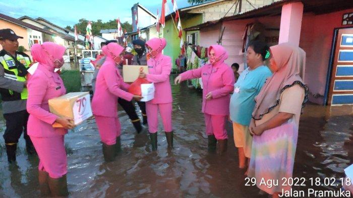 Ketua Bhangkari Cabang Singkawang Salurkan Bantuan Bhayangkari Peduli kepada Warga Terdampak Banjir