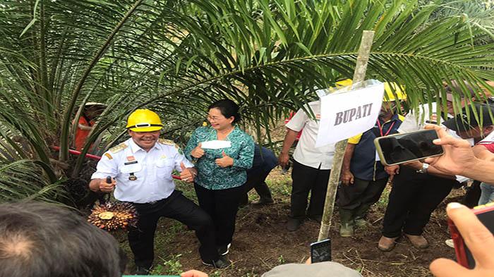 Bupati Sanggau Panen Perdana Kelapa Sawit Kegiatan PSR Tahun Tanam 2020
