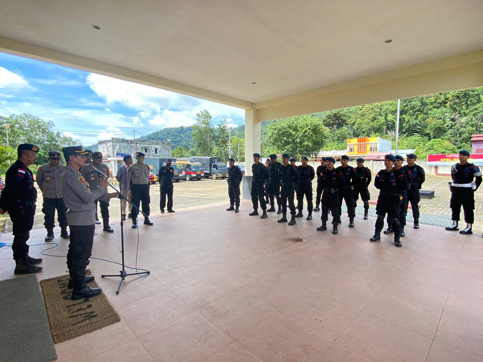 TRIBUN PONTIANAK. CO. ID, KAYONG UTARA - Polres Kayong Utara Kapolres Kayong Utara AKBP Arief Hidayat, S.H., S.I.K., melalui Wakapolres Kayong Utara Kompol Adi Nugroho, S.H, mengatakan pada hari ini, Selasa 18 Oktober 2022 telah dilangsungkan apel pelepasan pasukan BKO Kompi 4 Batalyon A Pelopos Sat Brimob Polda Kalbar dalam rangka Pilkades serentak di Kabupaten Kayong Utara.