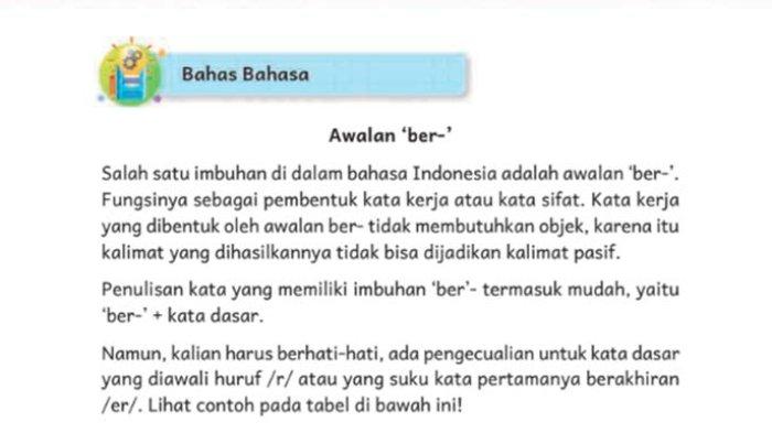 TRIBUNPONTIANAK.CO.ID - Pada artikel ini dibahas soal dan kunci jawaban kelas 4 SD Bab 3 Lihat Sekitar materi Bahas Bahasa awalan ber - pada kurikulum merdeka belajar.