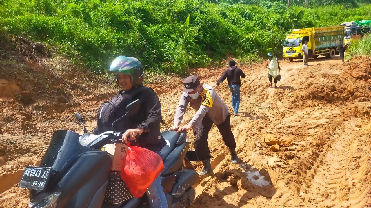 Pelayanan Kepolisian dilakukan diporos jalan provinsi Sayan-Kota Baru tepatnya didesa siling permai yang mengalami kerusakan parah.Jalan yang dilewati pengguna jalan melewati jalan tanah kuning dan berlumpur.